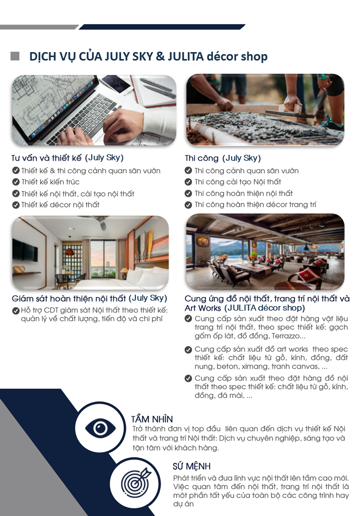 Mỗi không gian JULY SKY thiết kế, cả đội ngũ đều đặt cả tâm hồn và trái tim của mình vào đó. Biến nó thành một tác phẩm nghệ thuật khác biệt, đa dạng.